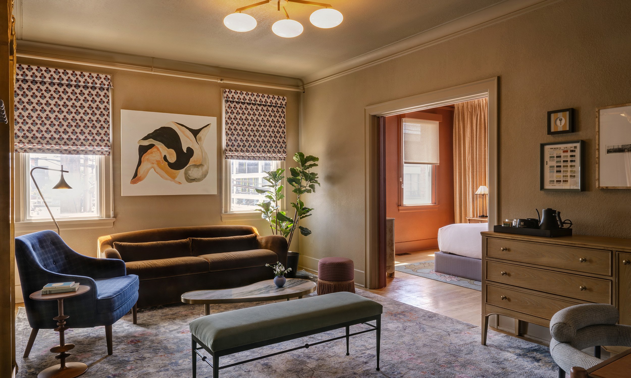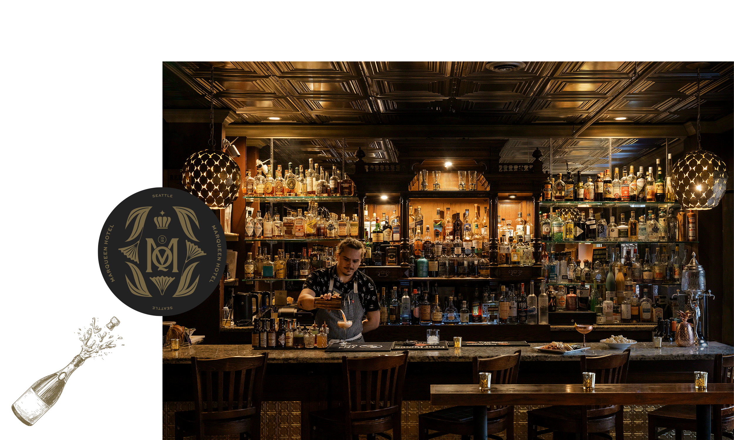 Over a hundred years of history lives in this building — from blacksmiths and Model T’s to the Tin Lizzie Lounge and guestrooms layered with local art and vintage character. The MarQueen has always known how to be both of its time and ahead of it. The rebrand was built to honor that quality: witty, warm, rich with detail, and genuinely unlike anything else on Queen Anne Hill.