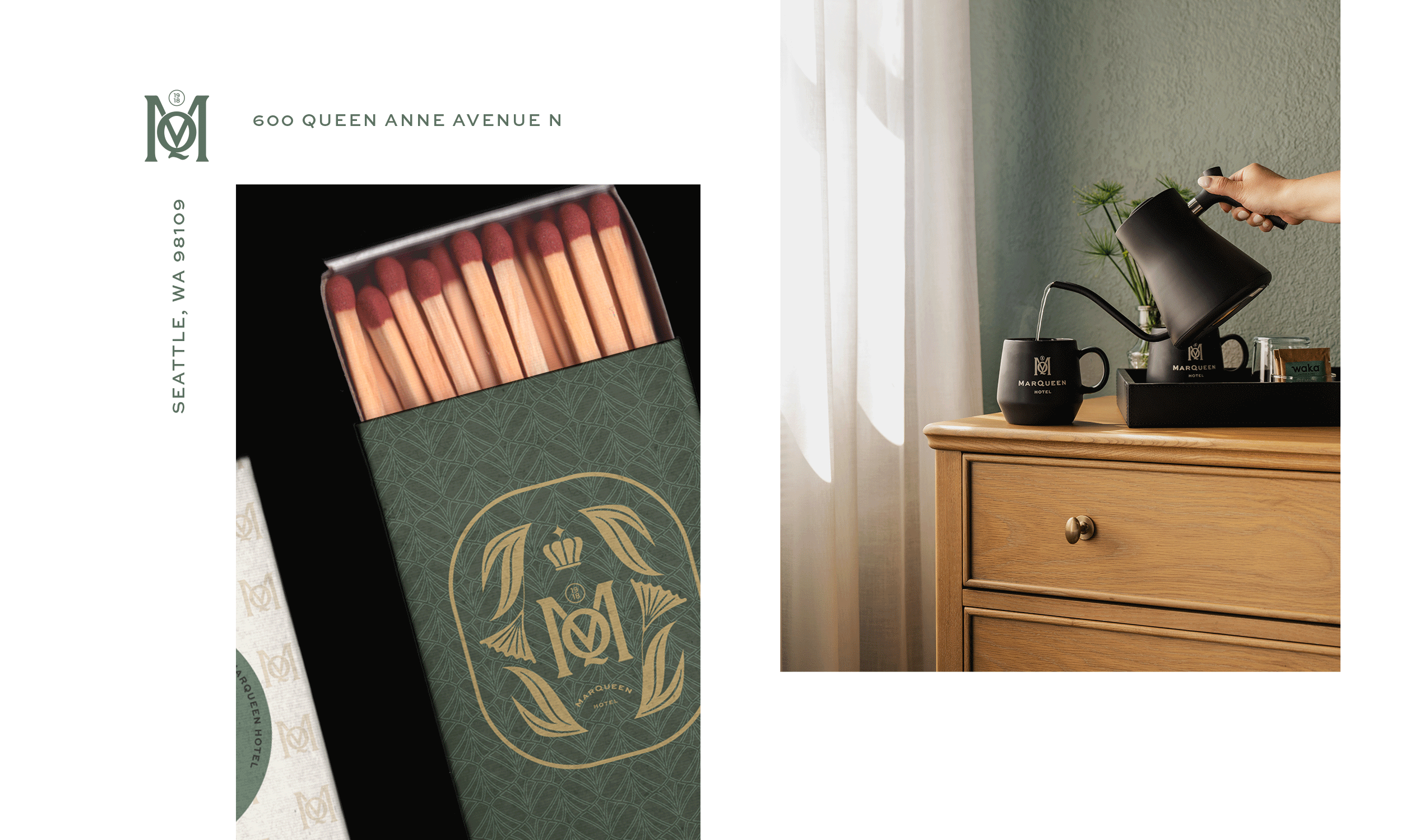 The MarQueen Hotel has been part of Seattle’s story since 1918, when it was built as the Seattle Engineering School to house students training at Henry Ford’s assembly plant. Over a century later, following a comprehensive renovation led by Cusack + Co Interiors, the MarQueen needed a brand that could hold all of that history without being weighed down by it. Working in close collaboration with the interior design vision, we developed an inspiration board that bridged the hotel’s industrial roots with a modern, eclectic sensibility, then built a full brand identity and style guidelines toolkit that the hospitality team could run with independently.